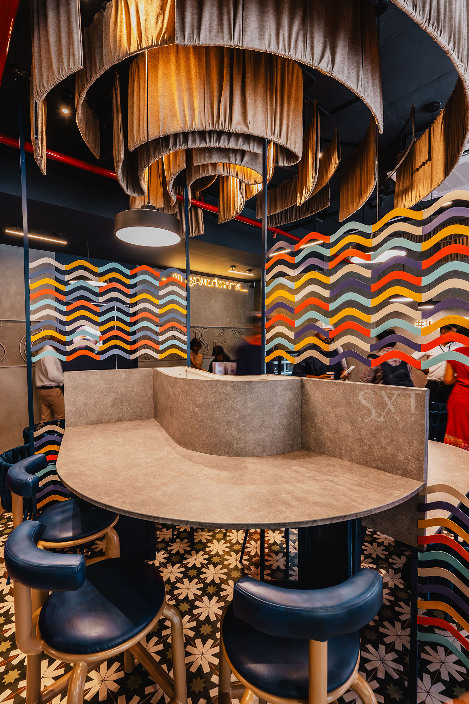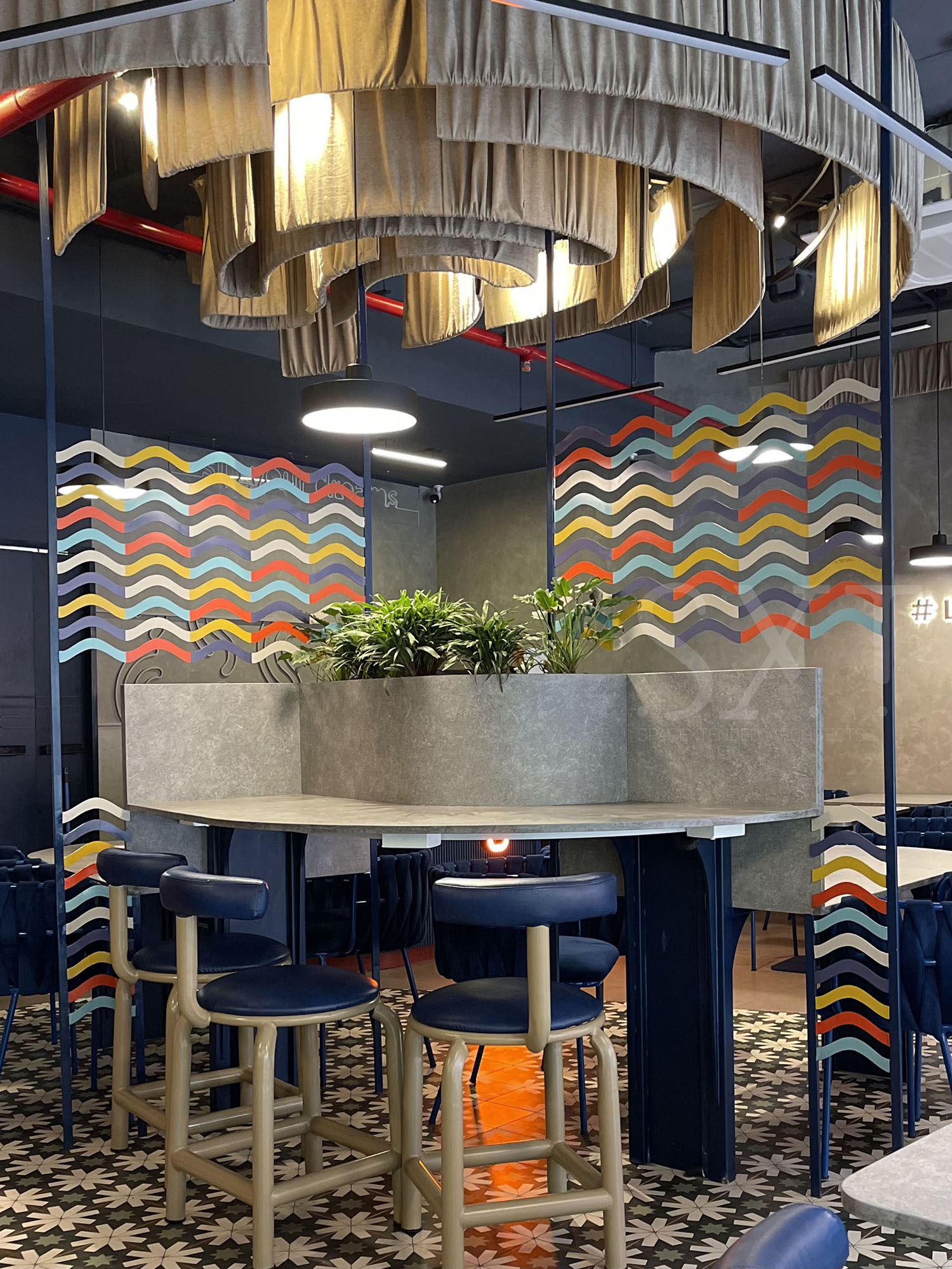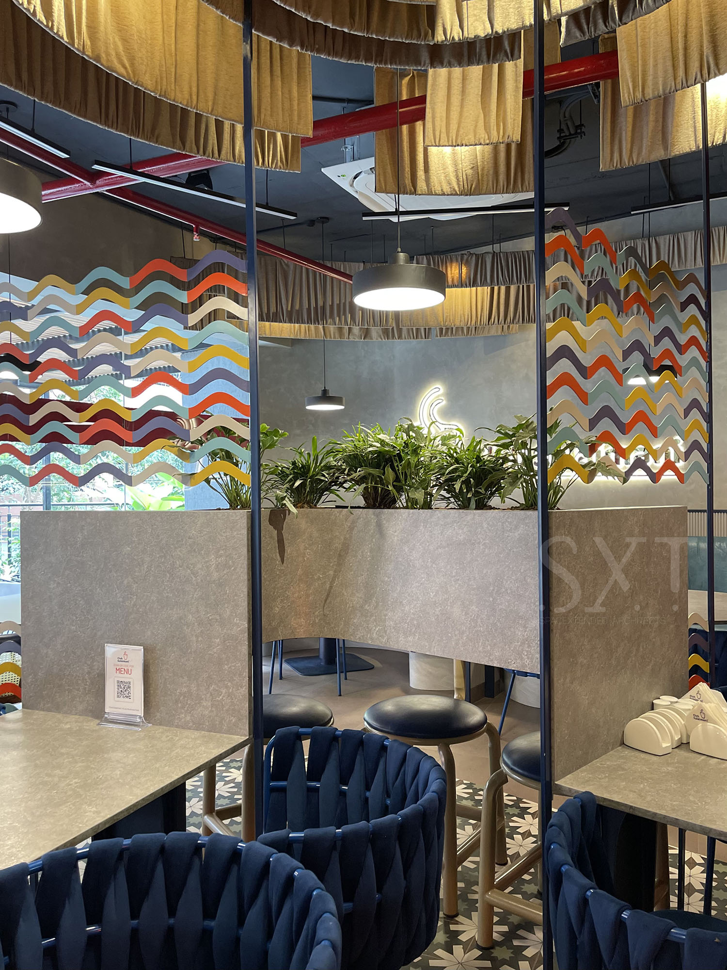 The vibrant, harmonic space is equally cosy and welcoming. It is conceptualised keeping both casual dining and business meetings in mind. The colourful, quirky design ensures an immersive atmosphere, visual transparency, and openness. And, if you wish to enjoy a coffee amidst the greenery, the design grants your wish,injecting a sense of harmony with nature.